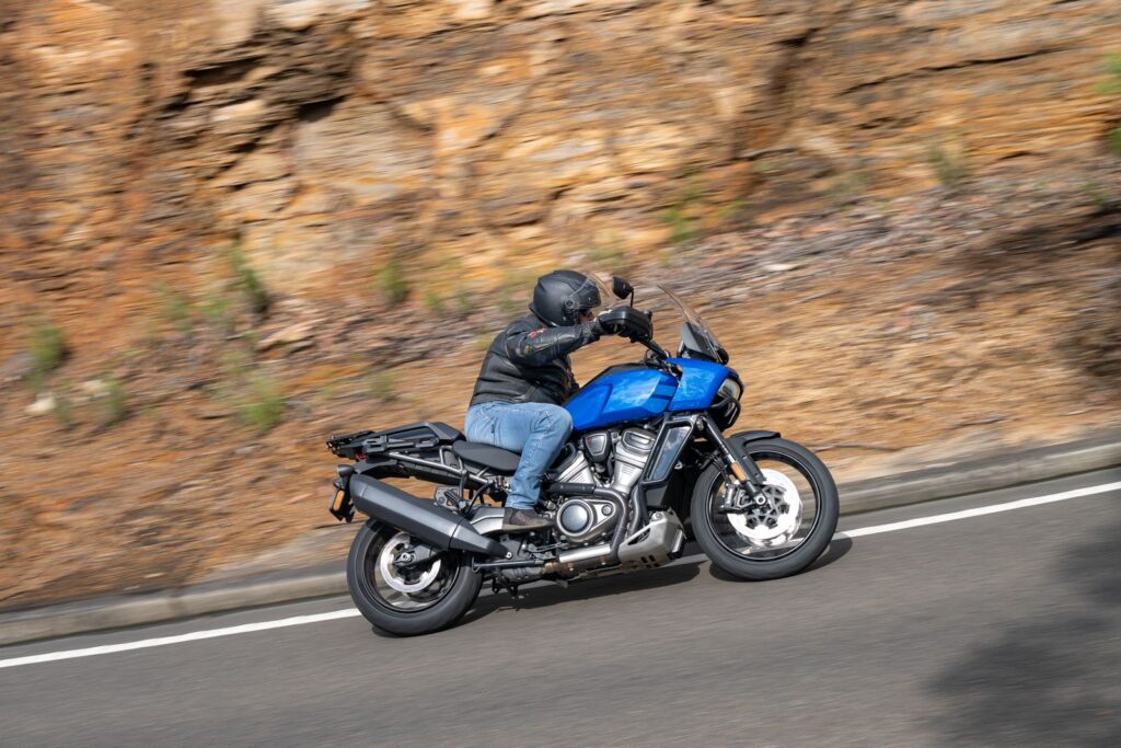 Now, you gotta wonder why Milwaukee persists in building the Pan America. Simple. It’s not a huge seller in Australia, but it does quite OK in its core US market. After it was launched in 2021, it became the biggest-selling Adventure bike in the USA. The bar-and-shield logo means a lot to the Americans.